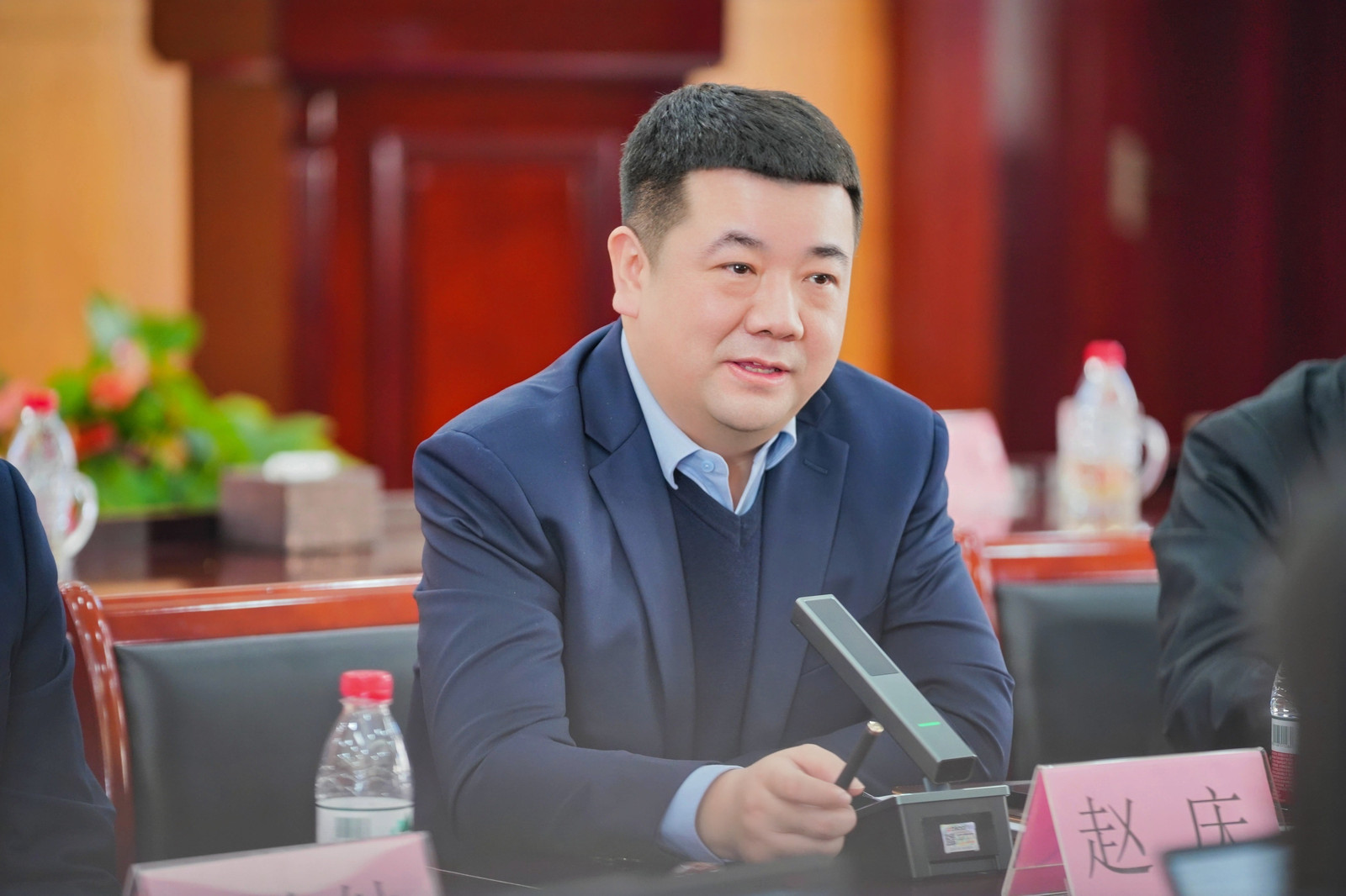 金石矿业股东代表崔龙飞上台分享了对此次合作的坚定信心与展望。他谈到,金石矿业发展历时近20年,在坚持不懈的努力下,发现了大型铜矿山,并完成储量备案。由衷的感谢盛达资源对金石矿业价值的认可,本次合作不仅是双方合作的起点,更是项目开发的起航。金石矿业将积极发挥地方优势,助力项目推进。